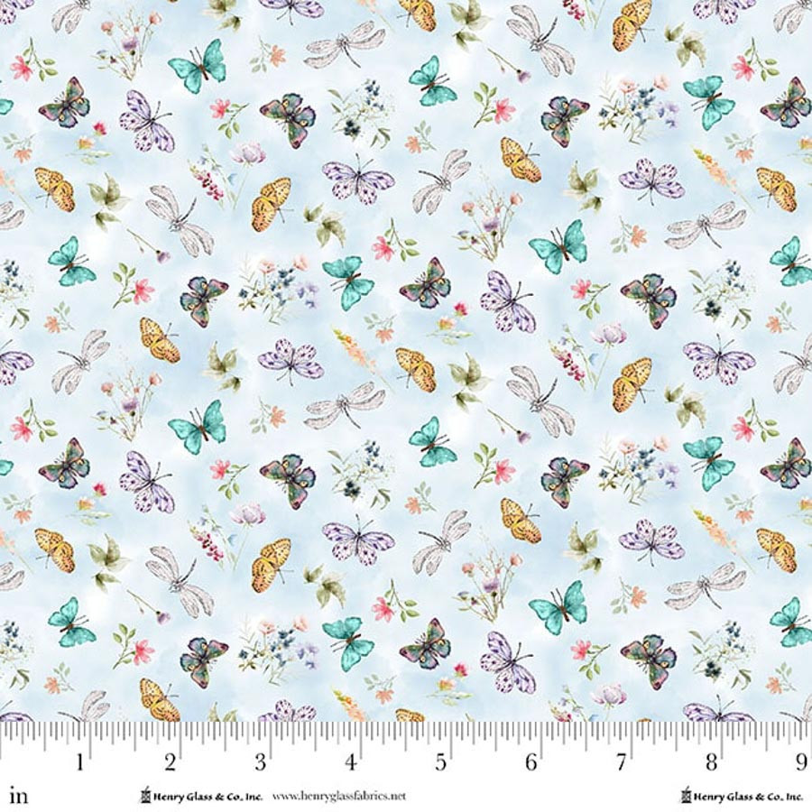 Basket Full of Blessings: BUTTERFILES & FLORAL-Sky Blue by Catherine Bartolli (1/2 yd)